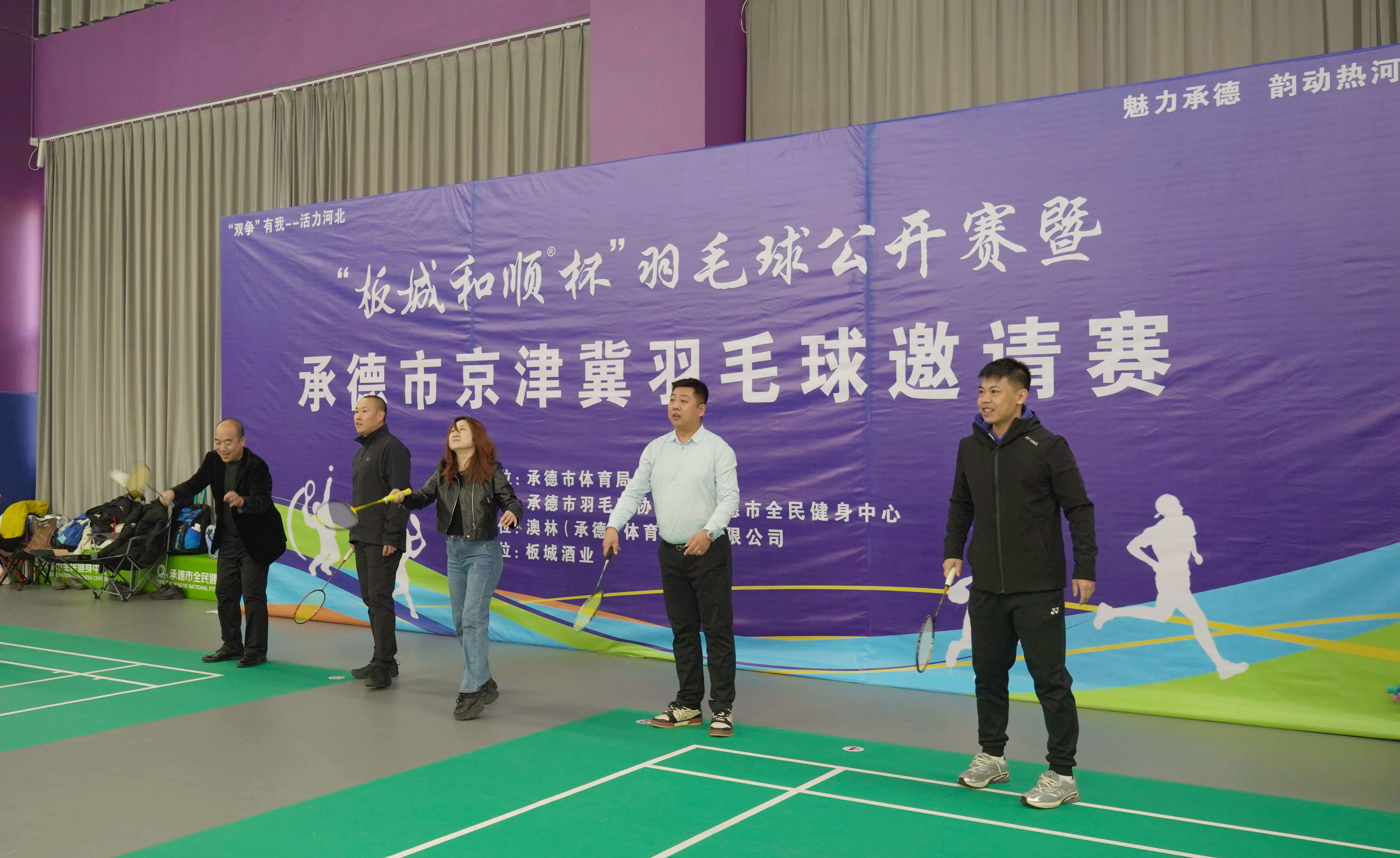 承德市體育局群體科副科長高揚帆,承德市羽毛球協(xié)會主席、承德永清環(huán)保工程有限公司總經(jīng)理宋鵬飛,承德市全民健身中心總經(jīng)理崔建洋,奧林游泳館總經(jīng)理吳凡,板城酒業(yè)承德市區(qū)和順部業(yè)務(wù)經(jīng)理朱海洋出席活動開幕儀式。